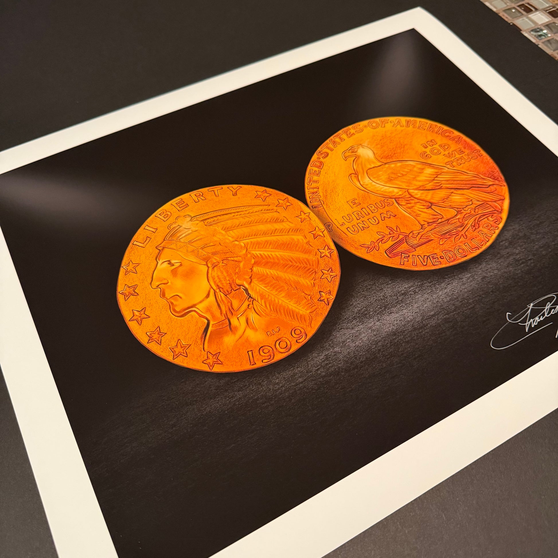Auction Highlight: In July 2006, a 1909 $5 Indian Head Half Eagle graded MS-66 sold at auction for $51,750, underscoring the coin’s enduring value and elite collector demand. This distinctive artwork lets you celebrate that legacy in your own space, without the 5-figure price tag.